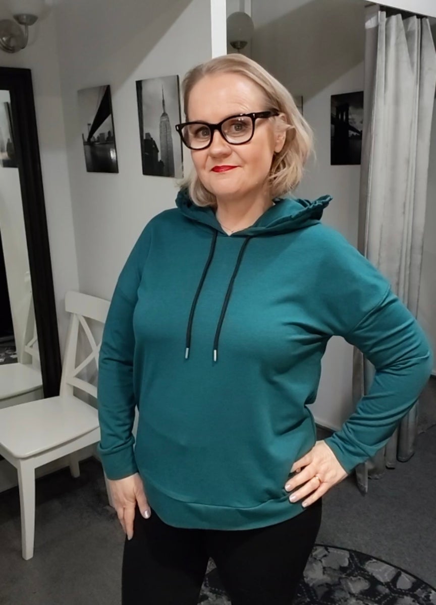 Petroolinvärinen laadukas huppari Top Secret merkiltä. Hupparin malli on suora, jossa hihoissa ja helmassa resori. Hupussa on pientä naisellista rypytystä sekä rypytysnarut. Hupparinväri on petrooli, metsänvihreä.