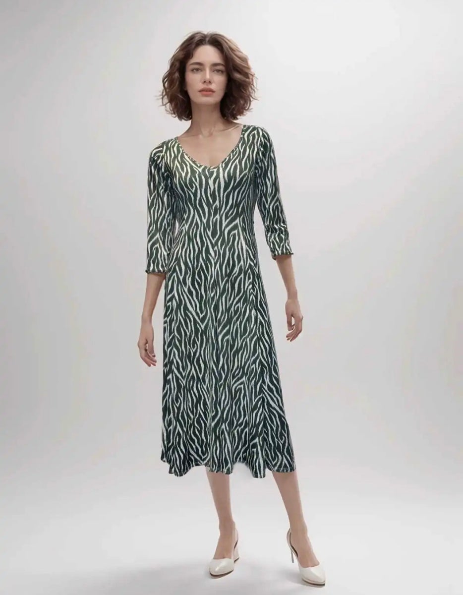 Upea laskeutuva ja naisellisen A-linjainen mekko Joy's -merkiltä Pariisista. Mekossa on maanläheinen vihreä väritys. Mekossa on 3/4 osaiset hihat, v-pääntie ja tasainen helma. Mekko on hyvin joustava ja ilmava. Tällä mekolla menee niin arki kuin juhlakin somistein kera. Tässä mekossa mielikin hymyilee.