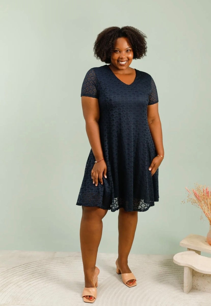 Ihastuttava pitsimekko tummansinisenä Pariisista. Hihallinen ja A-linjainen mekko joustavalla kankaalla. Monikäyttöinen ja ajaton juhlavamekko plusmitoituksen mekko. Kevyt v-pääntie. Upea mekko somistettuna myös jakkujen kanssa.