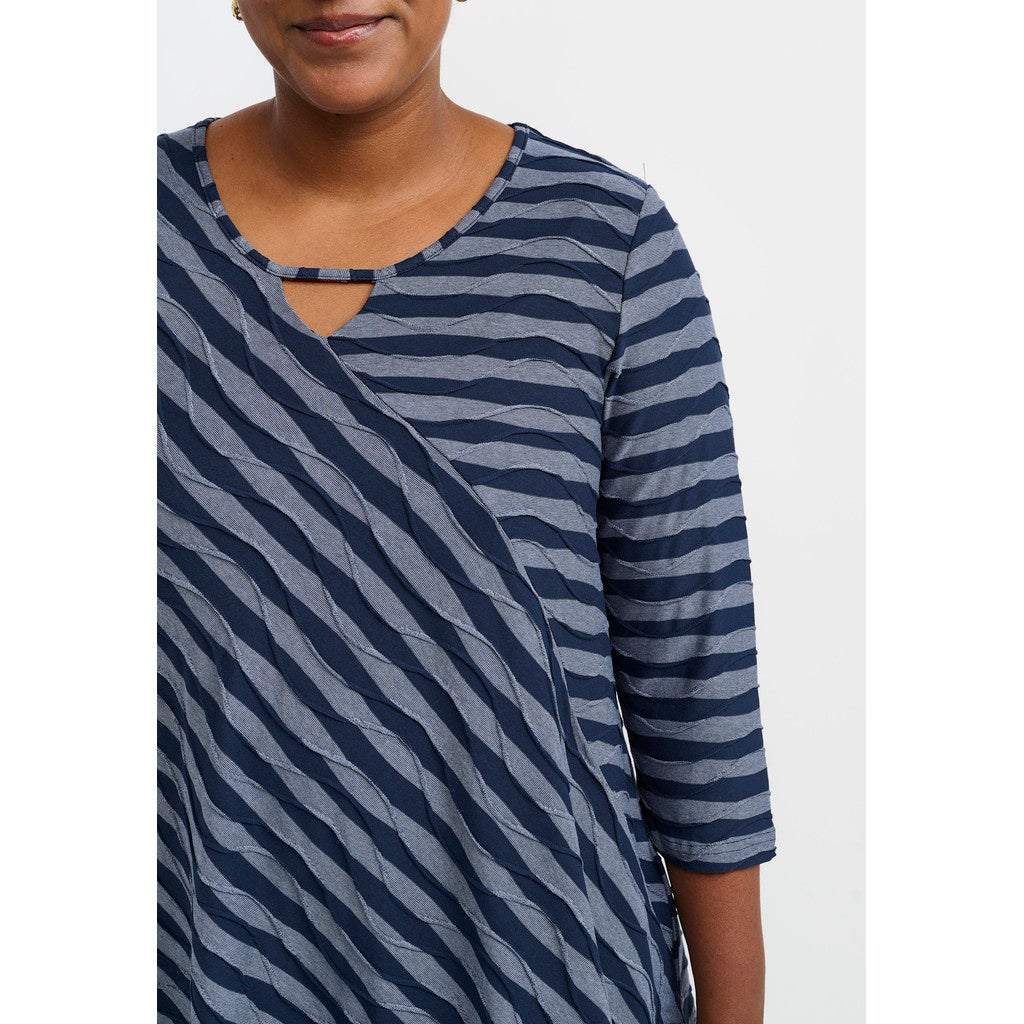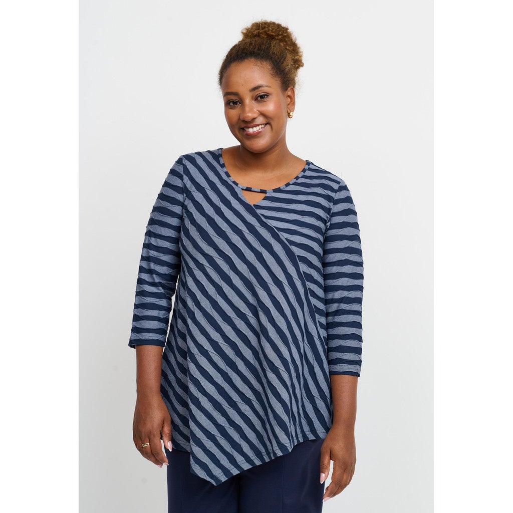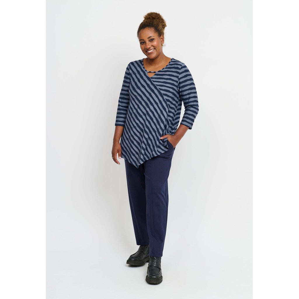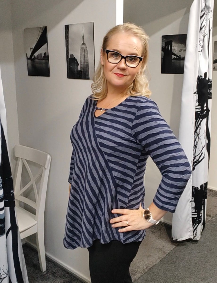 Supersuosittu Magrethe tunika Pont Neuf -merkiltä. Hieno pusero, jossa on 3/4-pitkät hihat ja pyöreä kaula-aukko, jossa on pieni avaimenreiän leikkaus. Puserossa on klassinen istuvuus ja se on valmistettu pehmeimpään viskoosilaatuun runsaalla venytyksellä. Puseron väri on farkunsininen/tummansininen. Pont Neuf mallisto on plusmitoitusta.