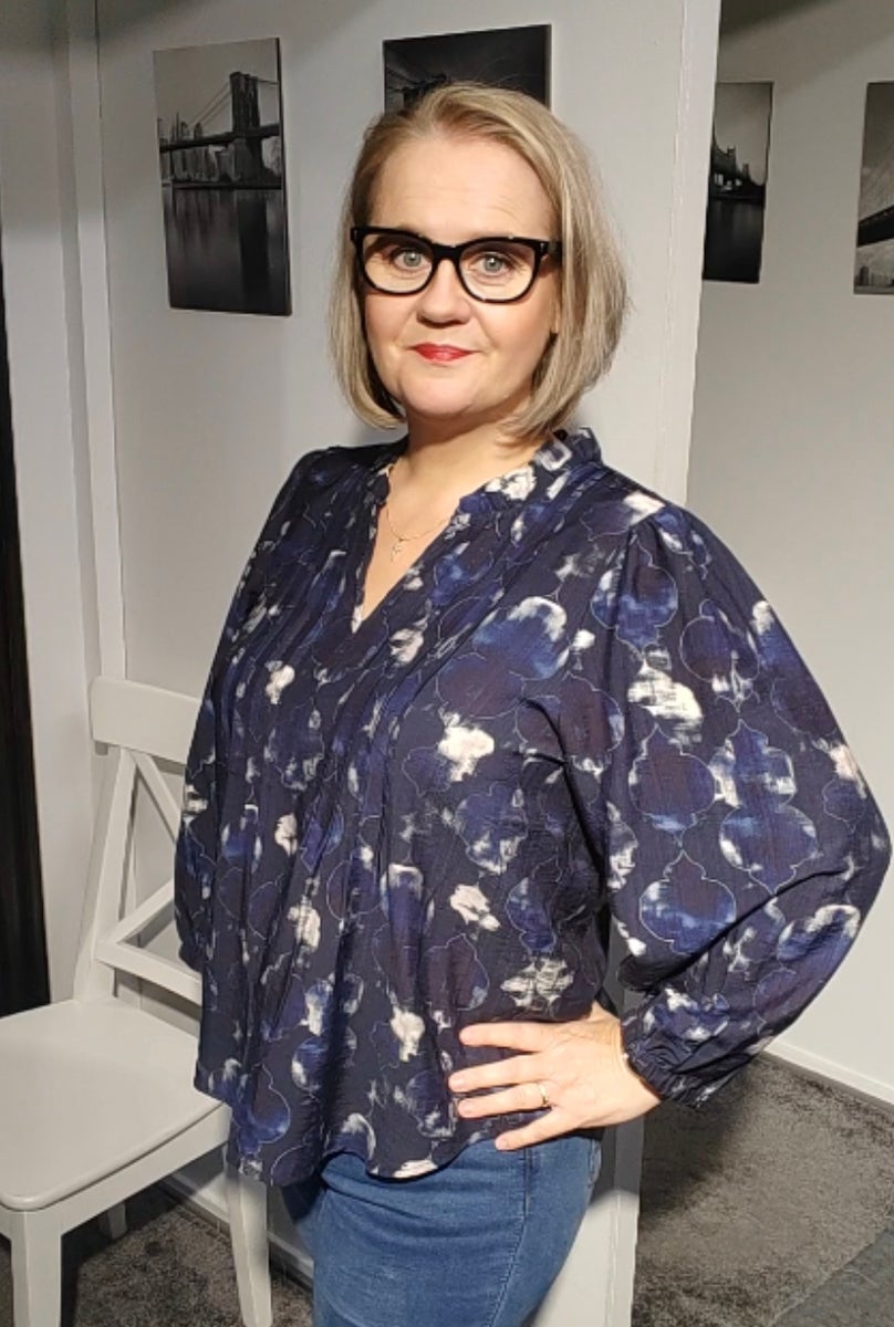 Kaunis ajaton Vera -pusero In Front -merkiltä. Sinisävyinen kaunis pusero sopii niin arkeen ja juhlaan. Naisellisia yksityiskohtia. Pussimaiset hihat kuminauha hihansuilla. Röyhelö kaulus josta kevyt v-pääntie. Edessä ja takana kauniita laskoksia. Rypytetyt olkapäät tuovat ryhtiä puseroon.