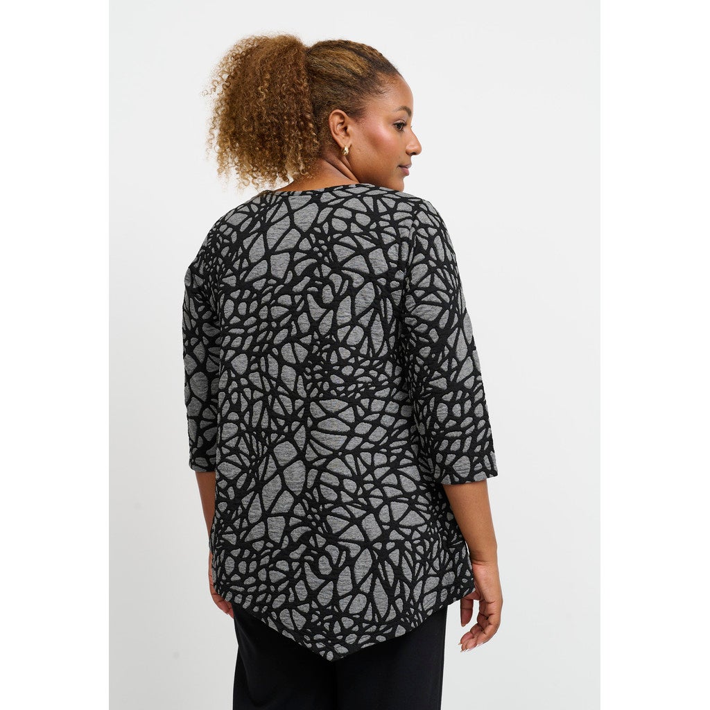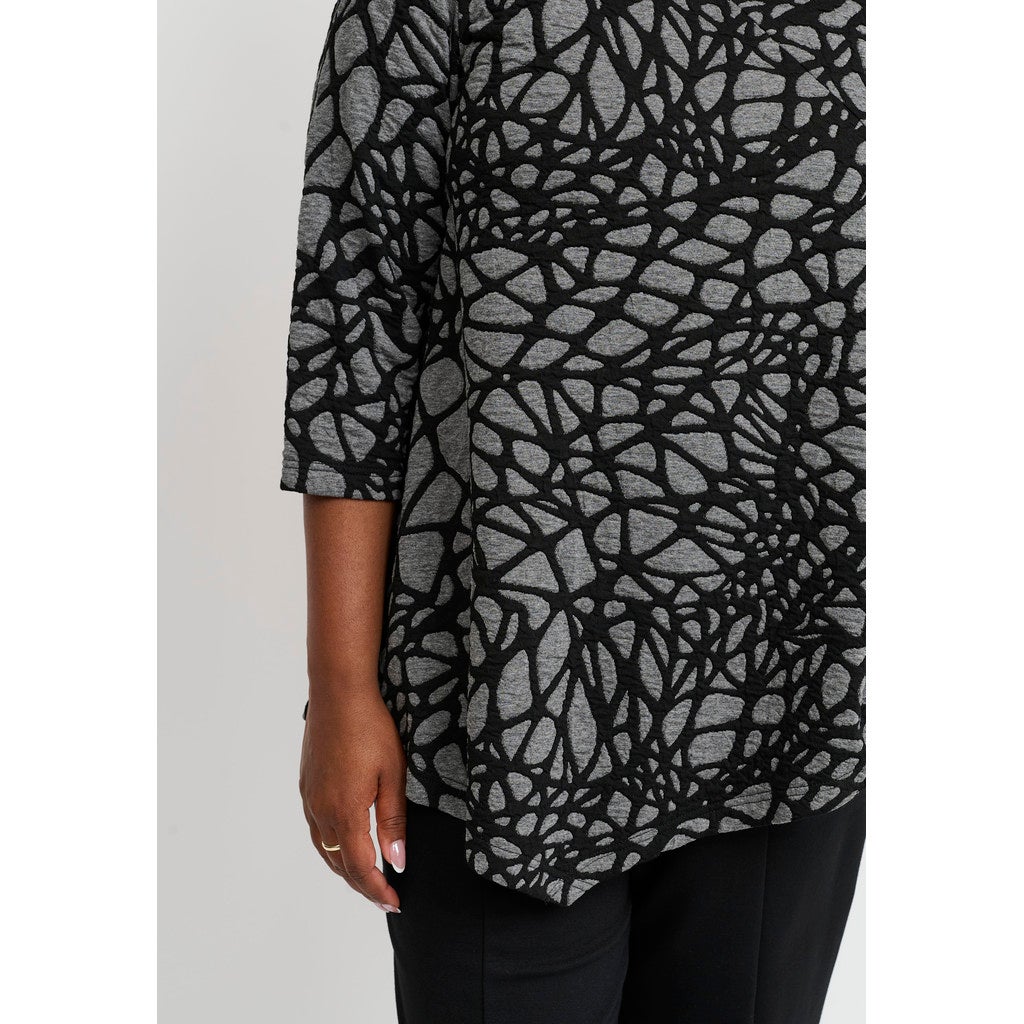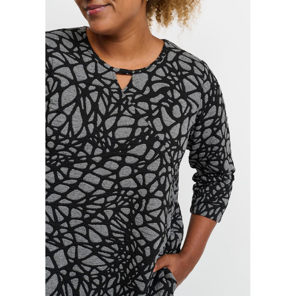 Supersuosittu Magrethe -tunika Pont Neuf -merkiltä. Hieno musta/harmaa pusero, jossa on 3/4-pitkät hihat ja pyöreä kaula-aukko, jossa on pieni avaimenreiän leikkaus. Puserossa on klassinen istuvuus ja se on valmistettu laadukkaaseen viskoosilaatuun. Tunikan pinta on strukturoitu. Loistava musta tunika niin surujuhliin kuin arkeen. Pont Neuf vaatemallisto on plusmitoitusta.
